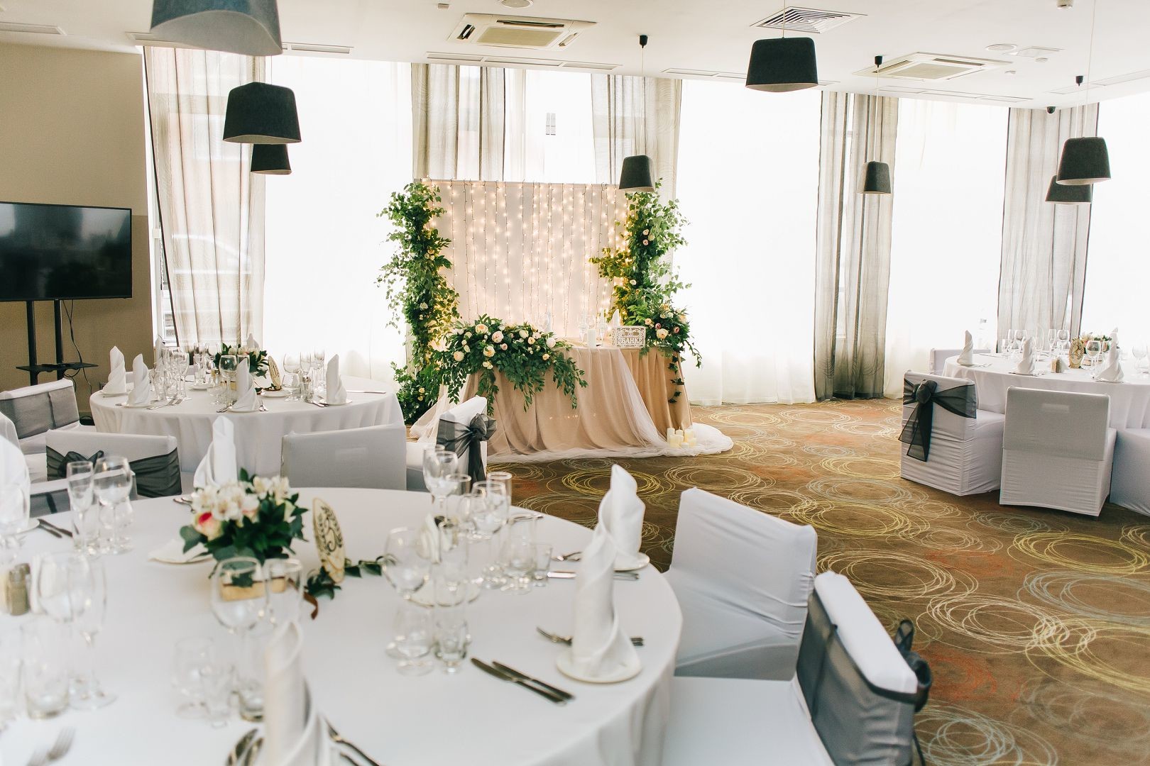 Возможны банкетная и фуршетная расстановки. Можно установить сцену, фотозону, организовать танцпол.
