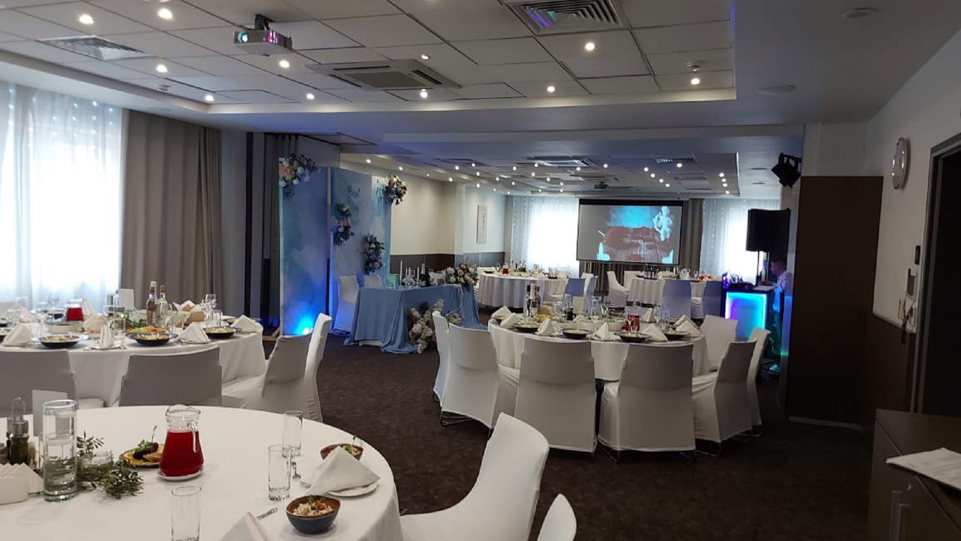 Идеально подходит для организации мероприятий, банкетов, свадеб и других событий: шесть технически оснащенных залов – трансформеров вместимостью до 100 человек, собственный ресторан с авторской кухней и кондитерский цех, 168 номеров от стандарта до люкса. Действуют гибкие ценовые условия на пакеты услуг и специальные предложения для гостей.